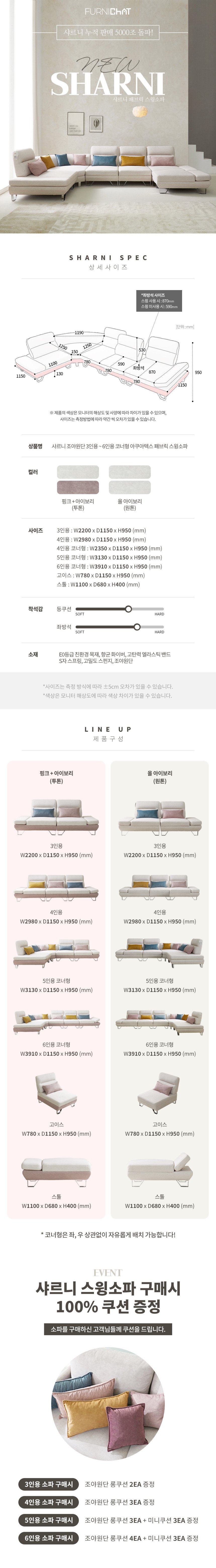 유버스 [퍼니챗] 샤르니 조야원단 4인용 패브릭 코너형 스윙소파 제품분류 쇼파 AS기간 1년 최저 렌탈가 월 32,300 (렌탈가) 제휴카드 할인가 월 (렌탈가) 3년 4년 5년 제품색상 선택 올 아이보리 + 0원 핑크/아이보리 + 0원 할인 제휴카드 보기 렌탈신청 장바구니
