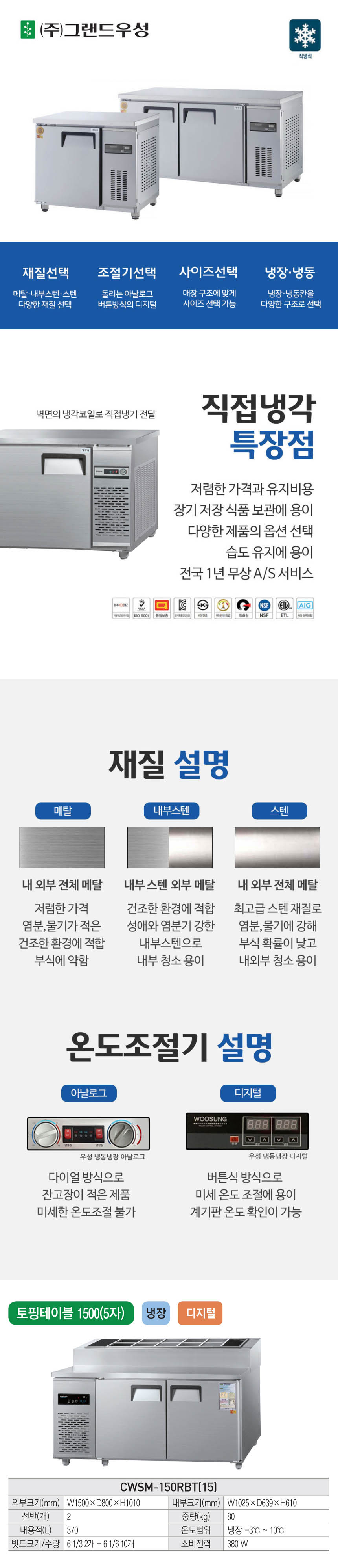 CWSM-150RBT_내부스텐 (T) 유버스 [그랜드우성] 직냉식 토핑 냉장고 370L 내부스텐 제품분류 업소용 용량(총량) 300L이상 기능 2도어 AS기간 1년 최저 렌탈가 월 53,600 (렌탈가) 제휴카드 할인가 월 (렌탈가) 3년 4년 5년 할인 제휴카드 보기 렌탈신청 장바구니