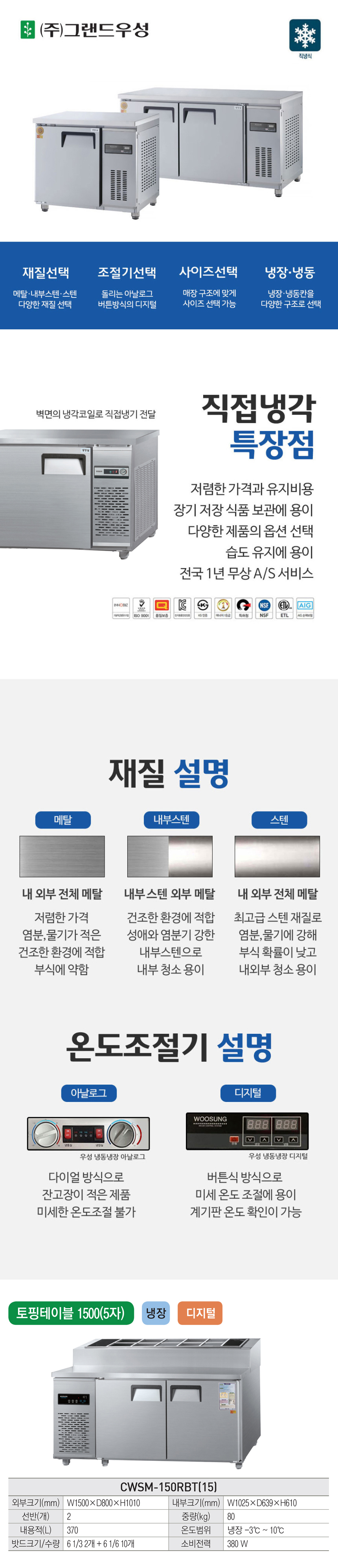 CWSM-150RBT_올스텐 (T) 유버스 [그랜드우성] 직냉식 토핑 냉장고 370L 올스텐 제품분류 업소용 용량(총량) 300L이상 기능 2도어 AS기간 1년 최저 렌탈가 월 57,600 (렌탈가) 제휴카드 할인가 월 (렌탈가) 3년 4년 5년 할인 제휴카드 보기 렌탈신청 장바구니