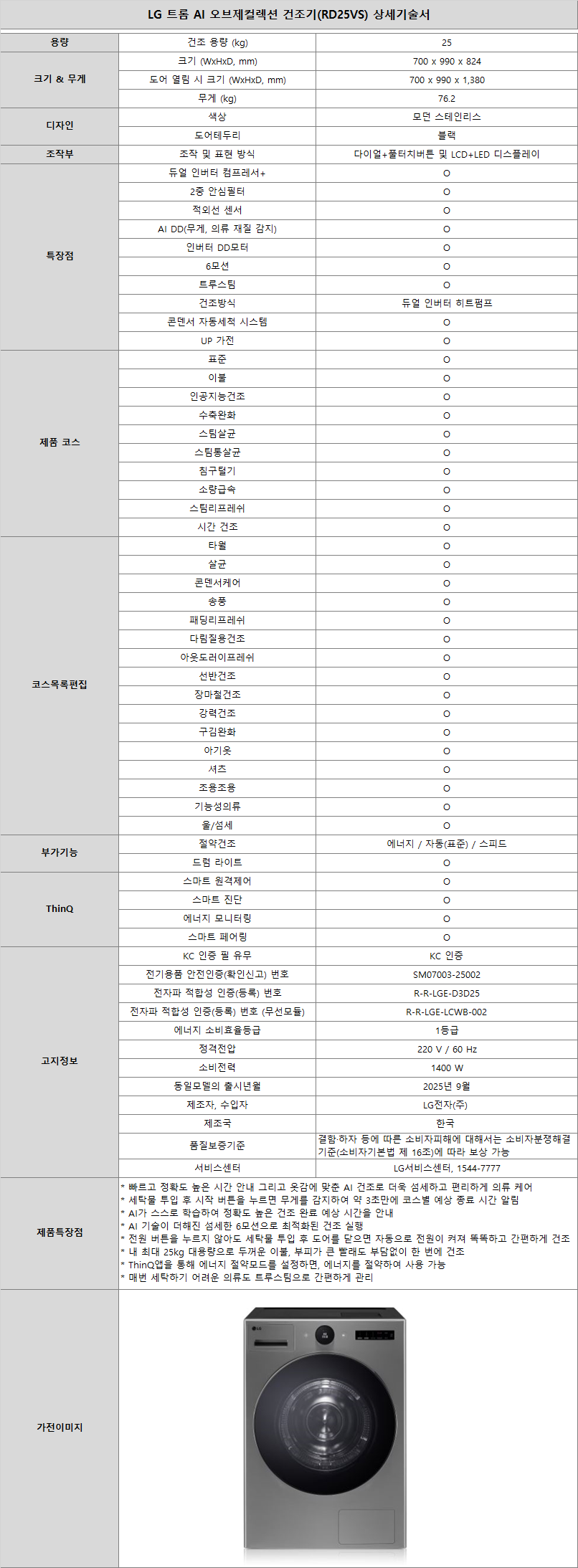 RD25VS 소노아임레디 [LG] 트롬 AI 오브제컬렉션 건조기 25kg 모던스테인리스 제품분류 생활가전 용량(총량) 25KG 구좌 4구좌 AS기간 1년 최저 렌탈가 월 66,000 (렌탈가) 제휴카드 할인가 월 (렌탈가) 1-200회 할인 제휴카드 보기 렌탈신청 장바구니